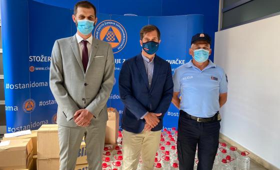 MUP-u ŽZH uručena su dezinfekcijska sredstva, a donaciju su zaprimili ministar MUP-a ŽZH David Grbavac i policijski komesar Milan Galić.